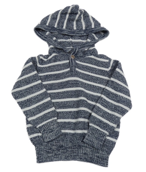 Tmavomodro-bílý pruhovaný melírovaný svetr s kapucí KIDS