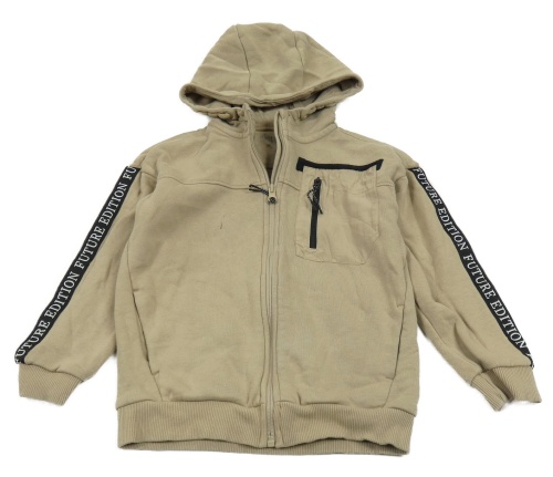 Béžová propínací mikina s pruhy na rukávech a kapucí Nutmeg