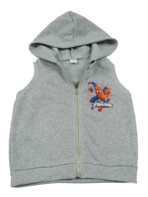 Šedá melírovaná propínací vesta se Spidermanem a kapucí