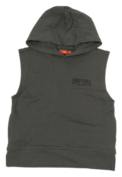 Šedá tepláková vesta s nápisem a kapucí