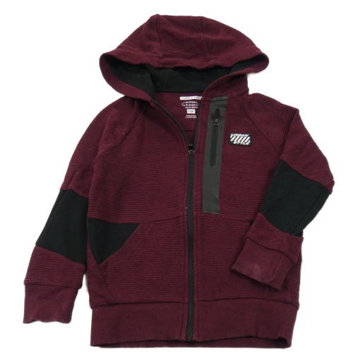 Vínovo-černá žebrovaná propínací mikina s nášivkou a kapucí F&F