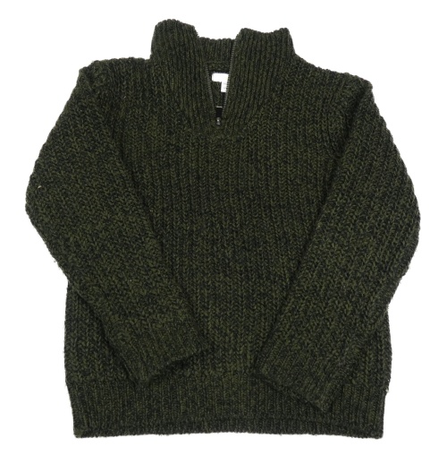 Khaki-černý melírovaný žebrovaný pletený svetr Vertbaudet