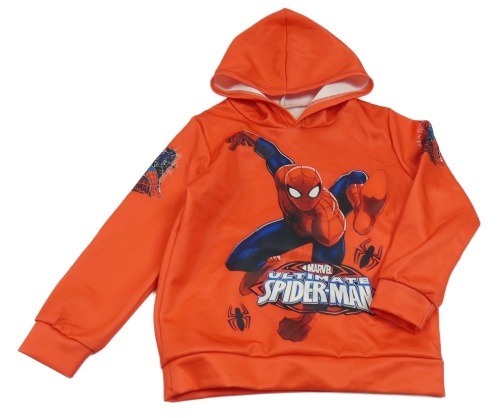 Červená lehká mikina se Spidermanem a kapucí
