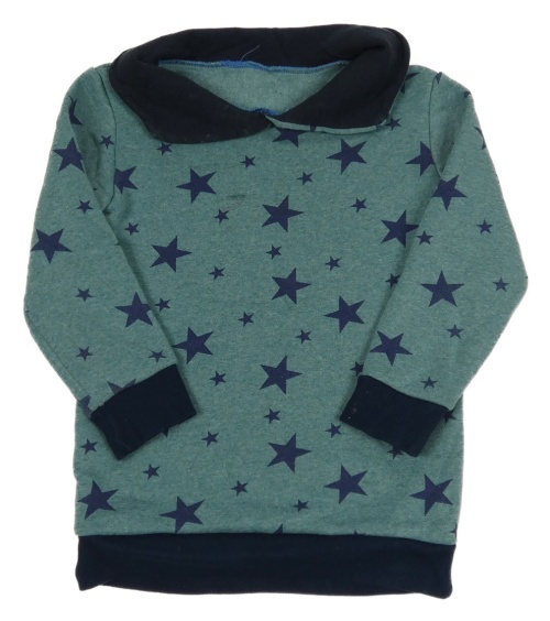 Zelená melírovaná dlouhá mikina s hvězdami a límcem
