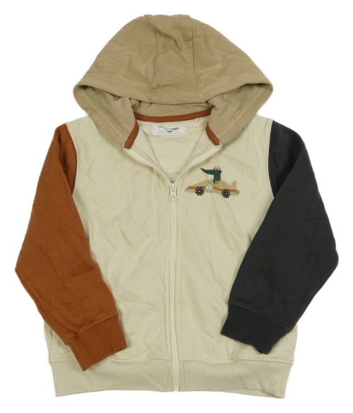 Béžovo-šedo-rezavá propínací mikina s autem a kapucí Next