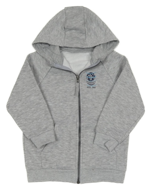 Šedá melírovaná propínací mikina se zeměkoulí a kapucí Dunnes