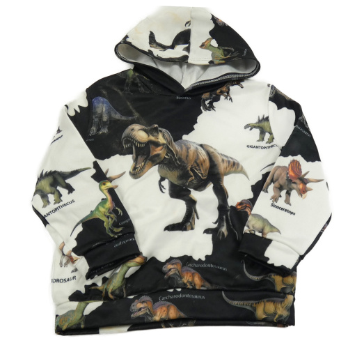 Bílo-černá mikina s dinosaury a kapucí