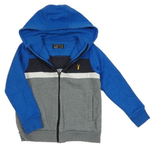 Šedo-modro-tmavomodrá propínací mikina s nášivkou a kapucí Next