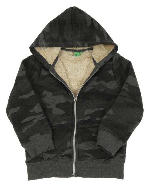 Tmavošedo-černá army propínací zateplená mikina s kapucí