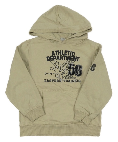 Béžová mikina s nápisy a orlem a číslem a kapsou a kapucí alive