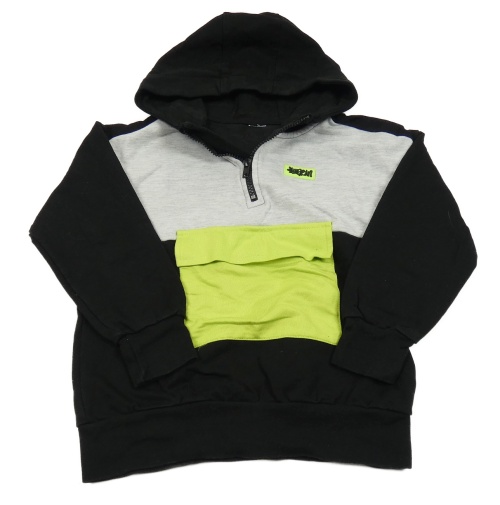 Černo-světlešedá/melírovaná mikina s nášivkou a kapsou a kapucí