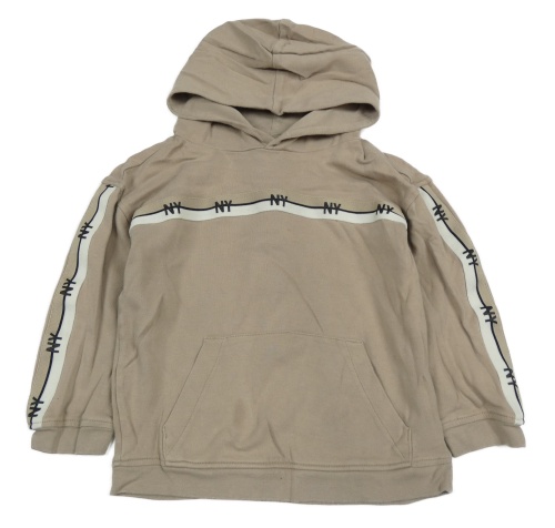 Béžová mikina s písmenky a pruhy a kapsou a kapucí Matalan