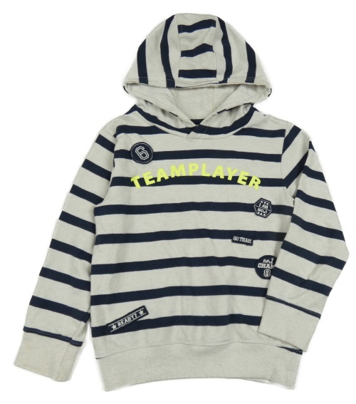 Šedo-tmavomodrá pruhovaná mikina s nápisem a kapucí Topolino