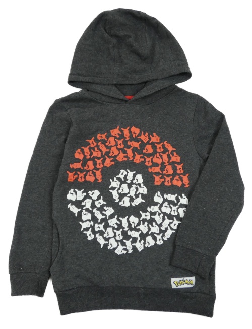Tmavošedá melírovaná mikina s Pokéballem a kapucí
