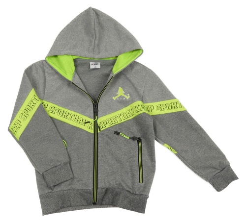Šedo-limetková propínací mikina s kapucí F26