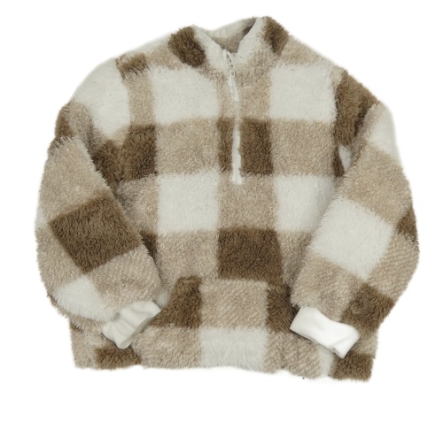 Hnědo-bílá kostkovaná chlupatá mikina Shein