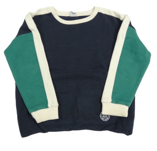 Tmavomodro/zeleno-smetanová mikina s kapsou s nášivkou Tu