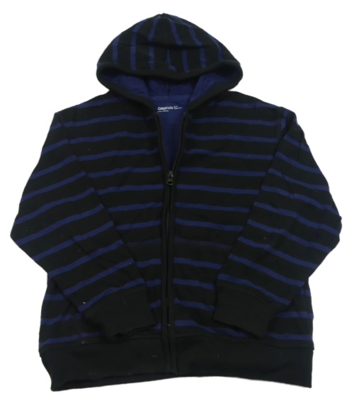 Černo-tmavomodrý pruhovaný propínací podšitý svetr s kapucí GAP