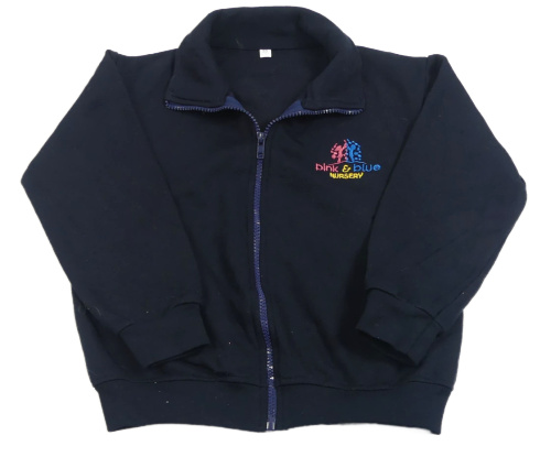 Tmavomodrá propínací mikina s nápisem