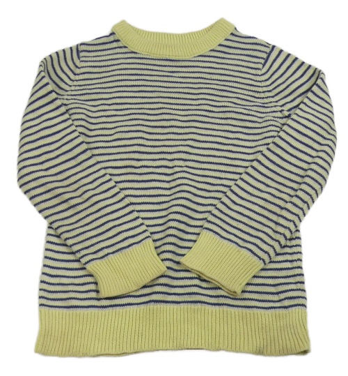 Šedo-žluto-tmavomodrý pruhovaný svetr