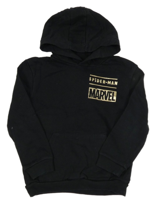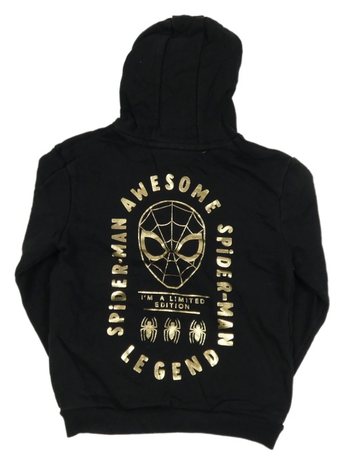 Černá mikina se Spidrmanem a nápisy a kapucí Marvel