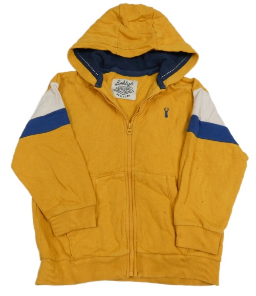 Hořčicovo-světlebéžovo-tmavomodrá propínací mikina s výšivkou a kapucí Next