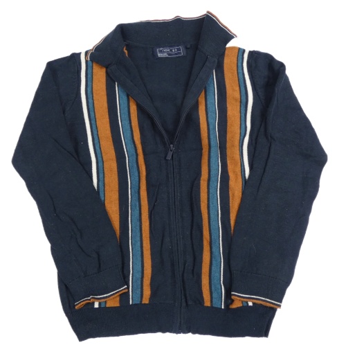 Tmavomodrý propínací svetr s pruhy a límečkem Next