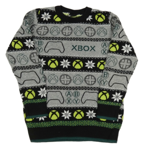 Šedo-černo-zelený vzorovaný svetr - XBOX George