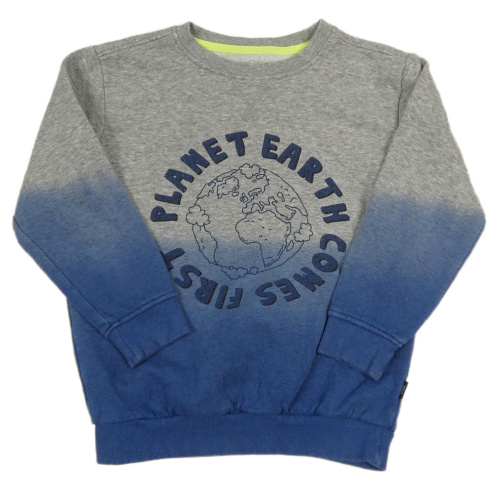 Šedo-modrá melírovaná mikina s nápisem a planetou