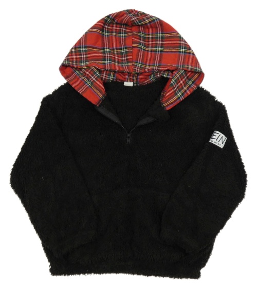 Černo-červená chlupatá mikina s kostkovanou košilovou kapucí Shein