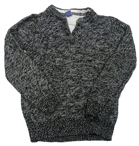 Černo-bílý melírovaný svetr s nášivkou a všitým trikem dopodopo