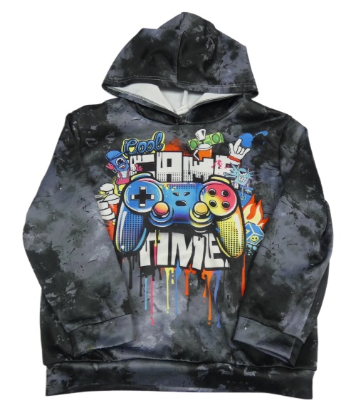 Černo-šedá sportovní mikina s obrázky a kapucí Shein