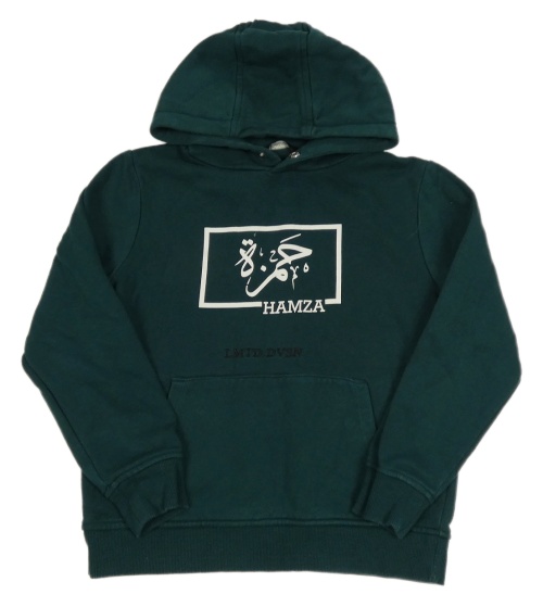 Smaragdová mikina s potiskem a kapsou a kapucí George