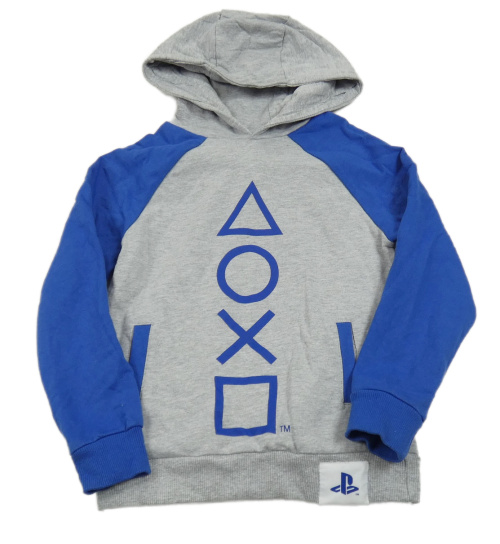 Šedo-modrá mikina se znaky a kapucí - PlayStation