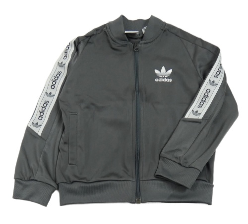 Tmavošedá propínací sportovní mikina s pruhem a logy Adidas
