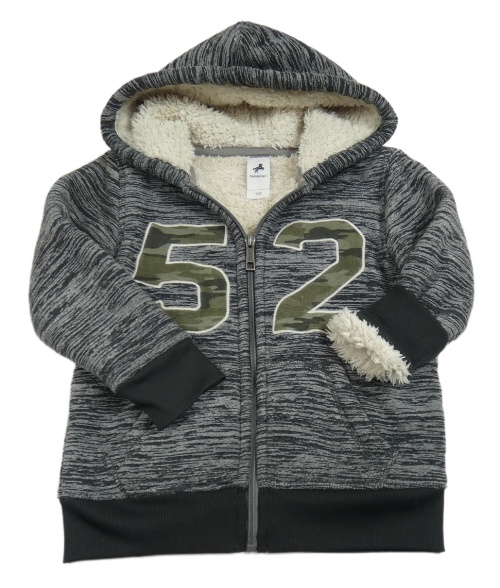 Šedo-černá melírovaná fleecová propínací zateplená mikina s číslem a kapucí C&A