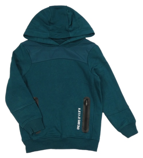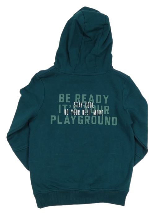 Tmavozelená mikina s nápisem na zádech a kapucí George