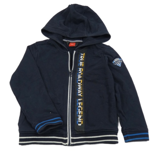 Tmavomodrá propínací mikina s nápisem a kapucí S. Oliver