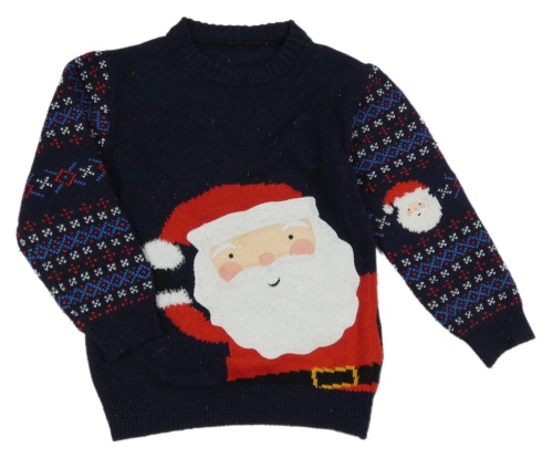 Tmavomodrý vlněný svetr se Santou a vzorem Nutmeg