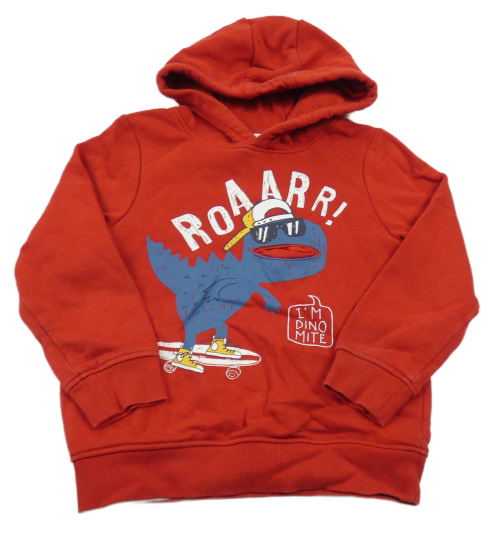 Červená mikina s dinosaurem a kapucí C&A