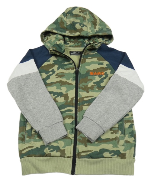 Army-tmavomodro-bílo-šedá propínací mikina s výšivkou a kapucí Next