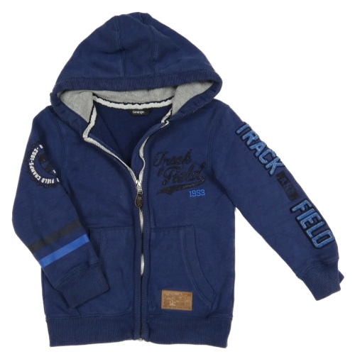 Tmavomodrá propínací mikina s nápisem a kapucí George