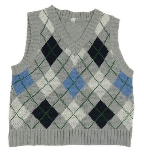 Šedo-modro-bílá károvaná svetrová vesta