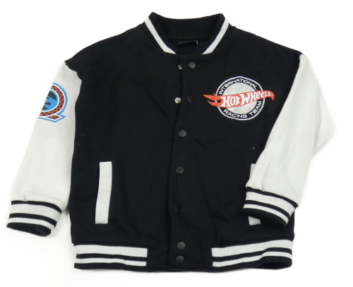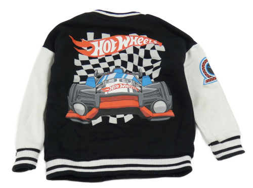 Černo-bílá baseballová mikina s Hot Wheels a pruhy