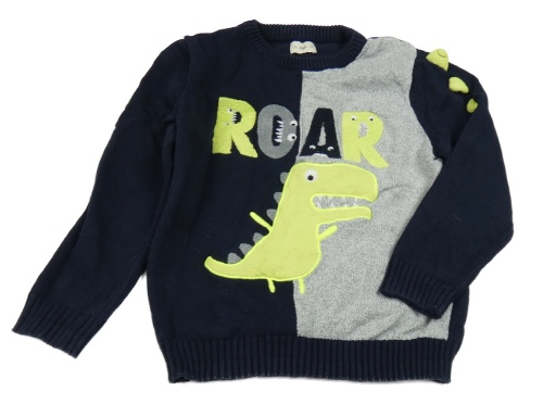 Tmavomodro-šedý svetr s dinem a nápisem F&F
