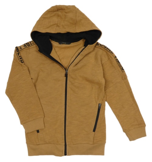 Hnědá propínací mikina s nápisy na rukávech a kapucí George