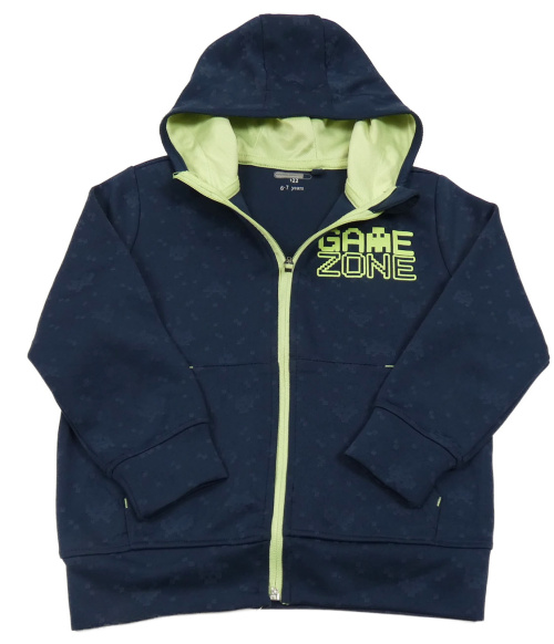 Tmavomodrá vzorovaná propínací mikina s nápisem a kapucí Ergeenomixx