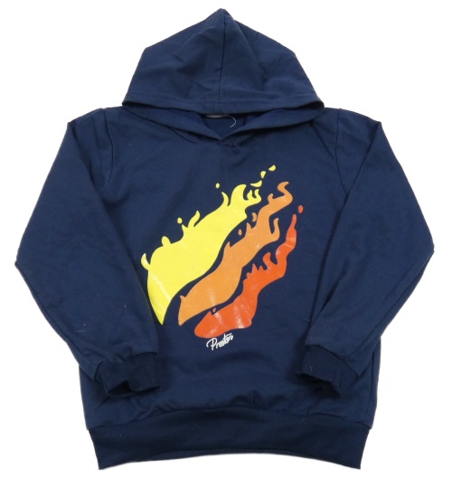 Tmavomodrá lehká mikina s potiskem a kapucí