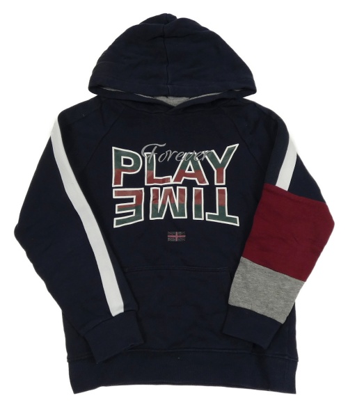 Tmavomodro-pruhovaná mikina s nápisem a kapucí OVS