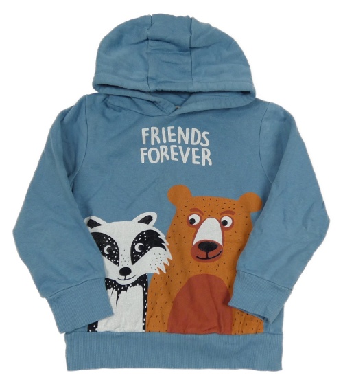 Modrošedá mikina s medvídkem a mývalem a nápisy a kapucí H&M
